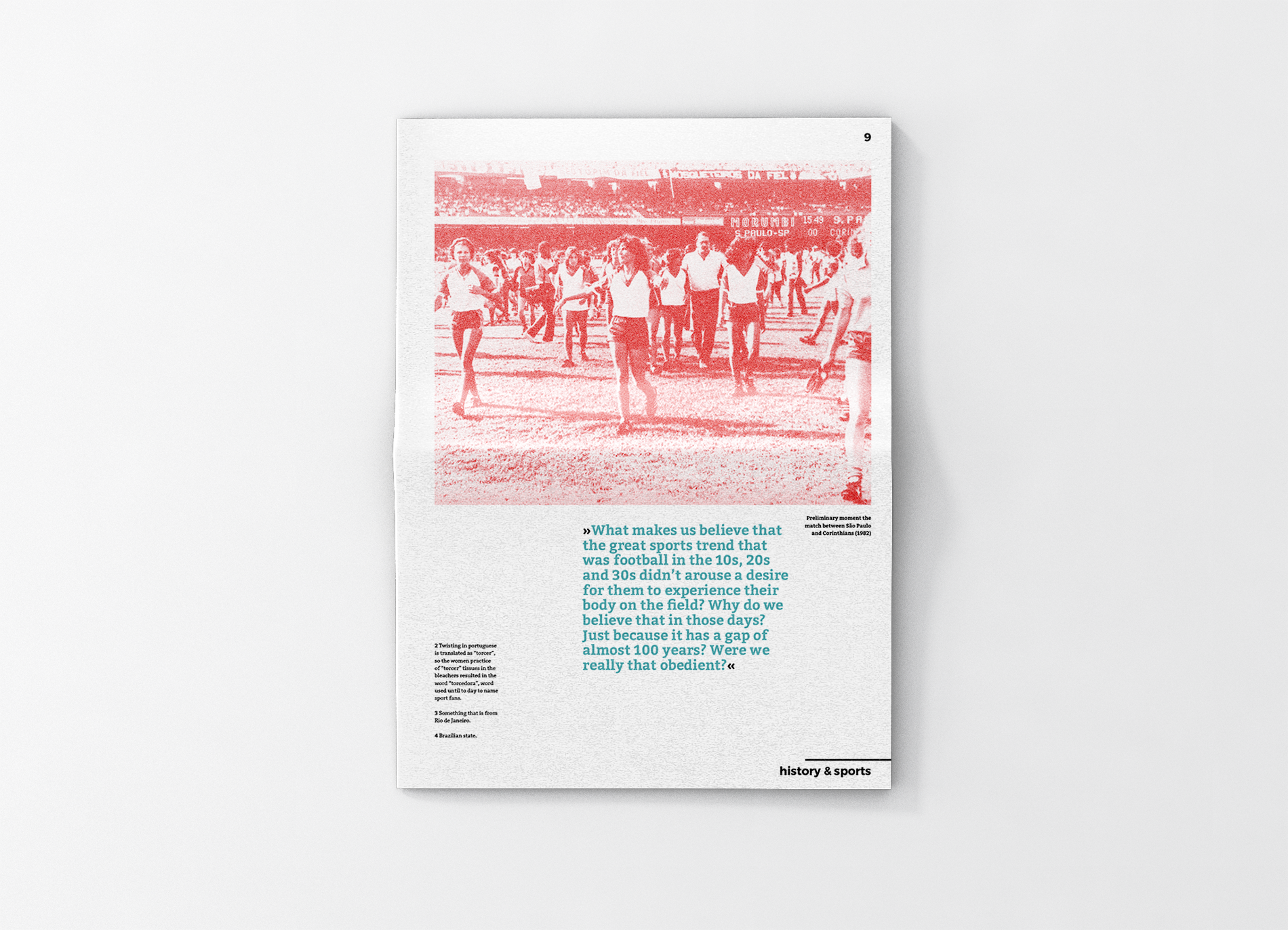This was a project from KISD (Köln International School of Design) and the theme was genre and sport. Our main goal was to design a magazine that would consider different topics and approaches within the theme. I interviewed Aira Bonfim, a Brazilian artist and historian who curated an exhibition about the women's football team at the Football Museum in Sao Paulo.