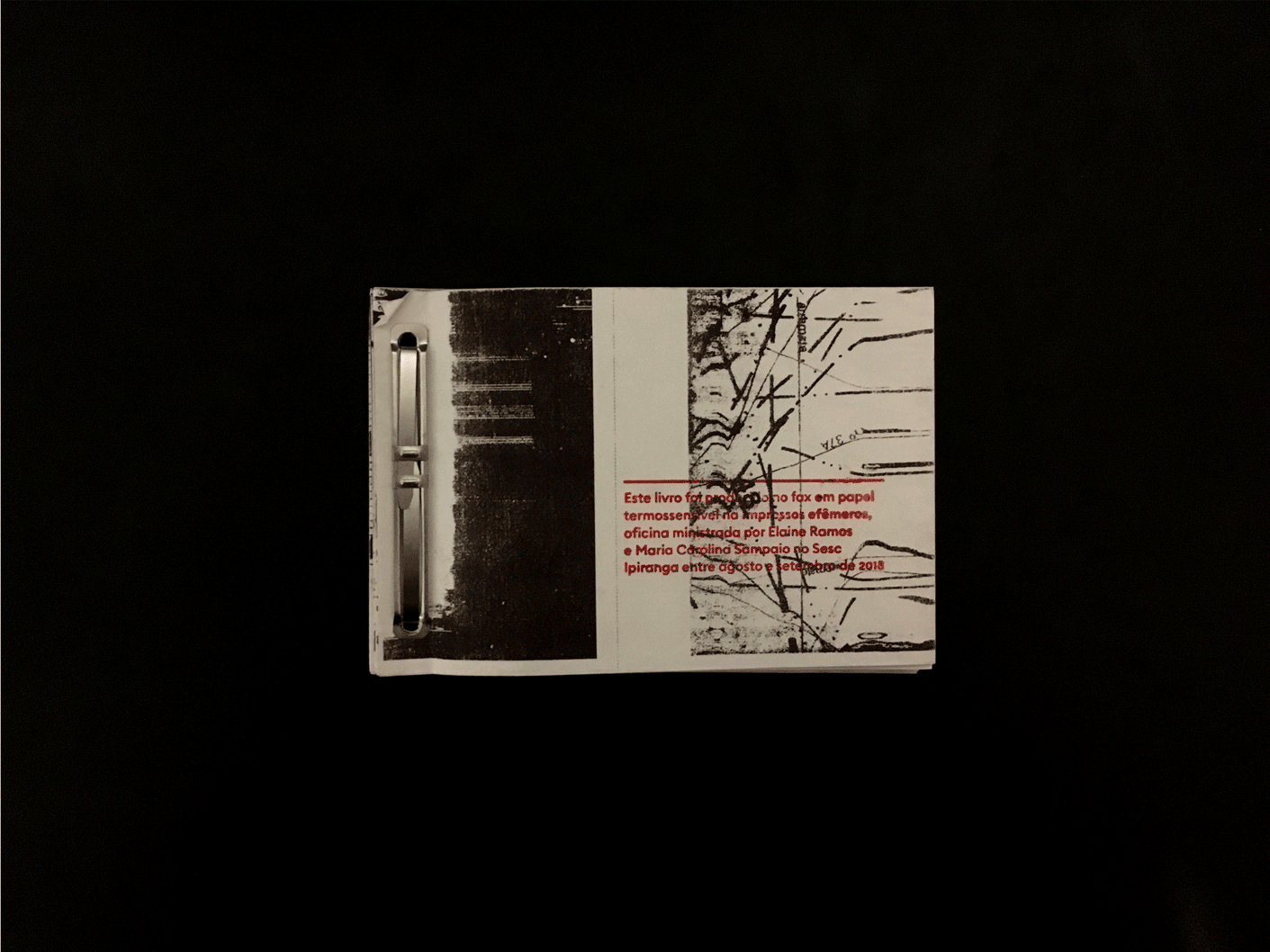 Book produced in fax machine on thermosensitive paper from ephemeral printed material. It was part of a workshop by Elaine Ramos & Maria Carolina Sampaio.
