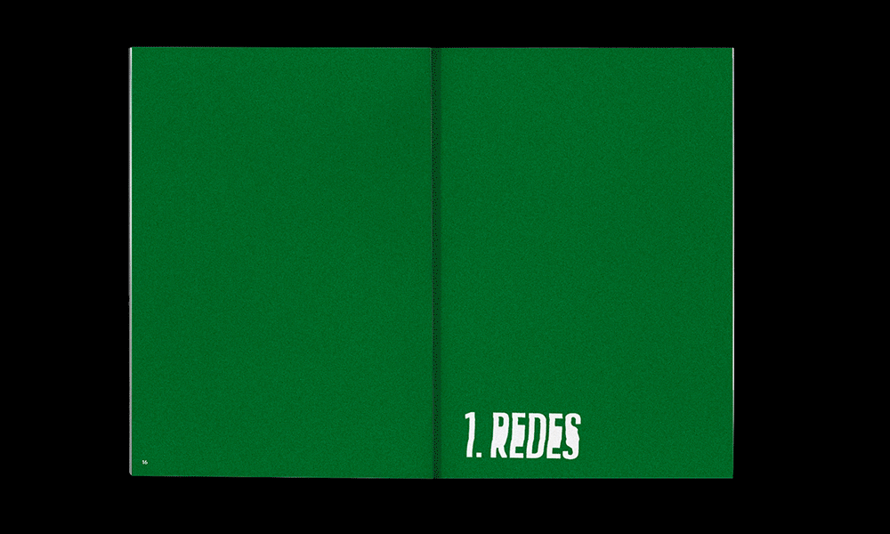 The typeface chosen for the body of the text, Protipo, is a Latin American typeface designed by Veronika Burian and José Scaglione in 2018. For the chapter and subchapter headings, the initial text was written in Protipo Wide Extrabold in capitals. The words were printed and distorted several times in a vertical direction using a scanner. The title of the book was also initially printed in Protipo Wide Extrabold in capital letters. The subtitles were printed in the same way as the others, with Protipo Wide Extrabold in capital letters. This time, however, the printed text was cut out by hand and then scanned without moving the paper. In addition, graphic compositions with distorted letters and phrases were created, as well as handwriting interference throughout the book.