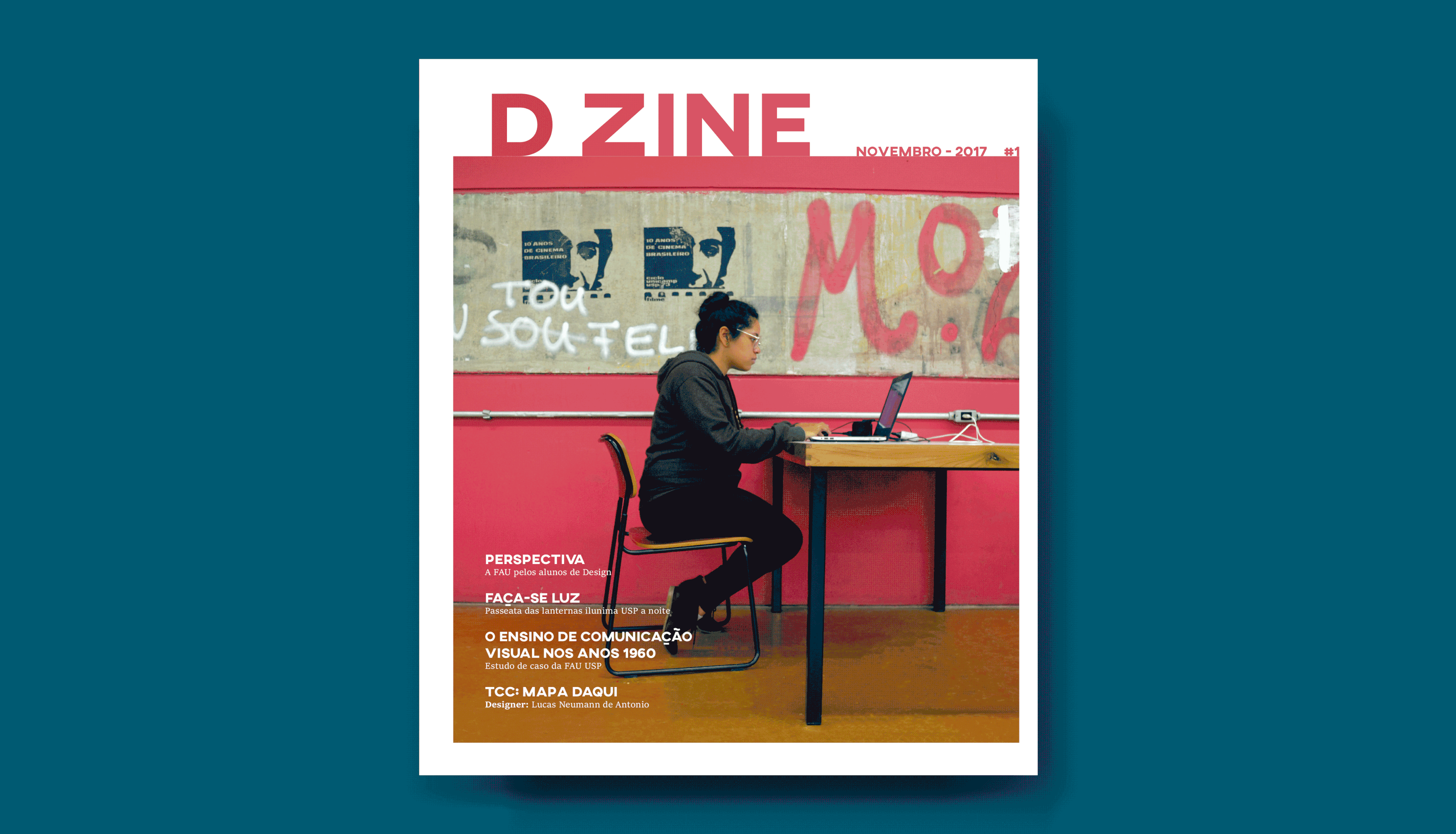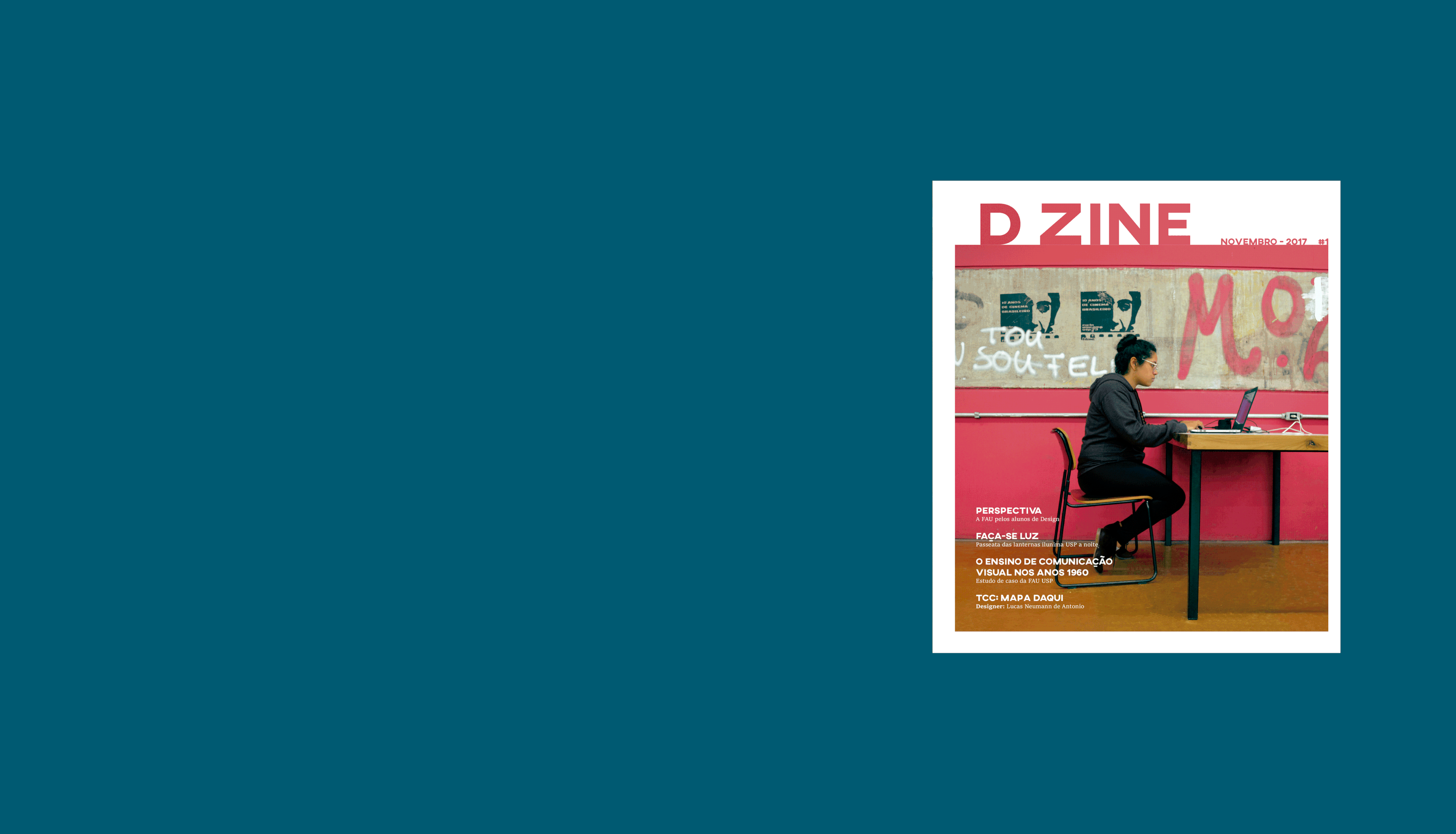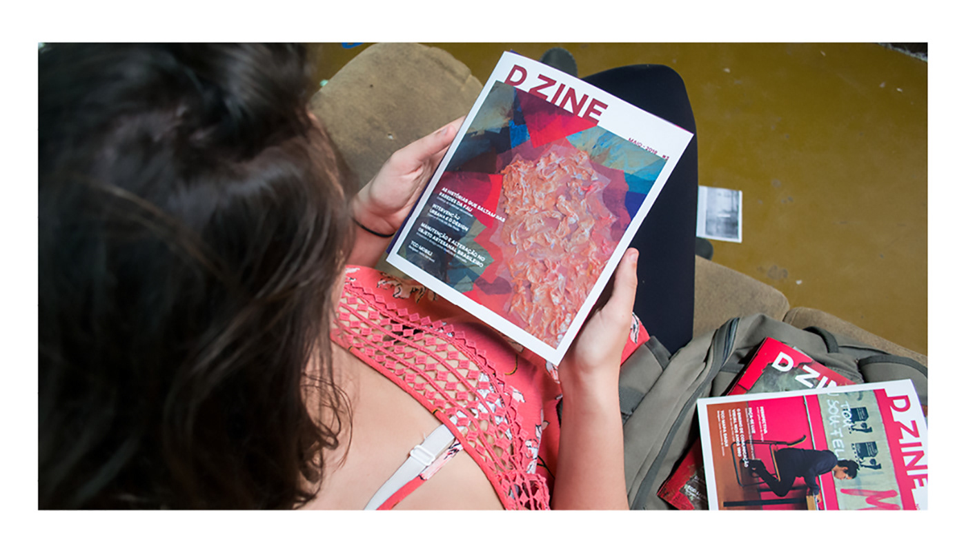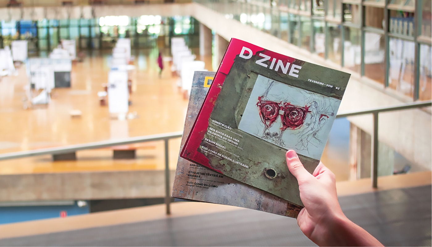 The magazine D ZINE was created by three design students of the Faculty of Architecture and Urbanism - FAU USP for the class Visual Project IV. Its goal is to affirm our space in the university, since the Design course is recent and often neglected inside the faculty, and introduce students to a new way of knowing and discussing Design.