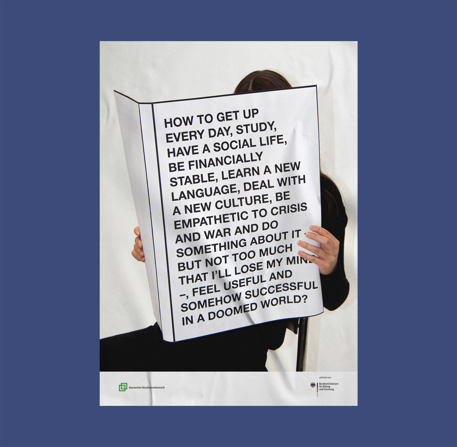 Poster created for the 38th German Student Union's poster competition 2024, aimed at students majoring in graphic design, visual communication or communication design who are enrolled at a state or state-recognized university in Germany. The topic was "Get Out of the Crisis Mode" and students were invited to submit their interpretations regarding the topic.