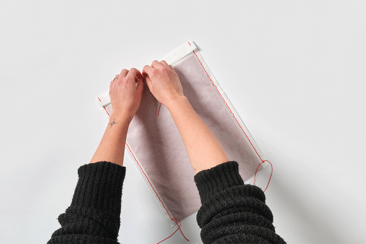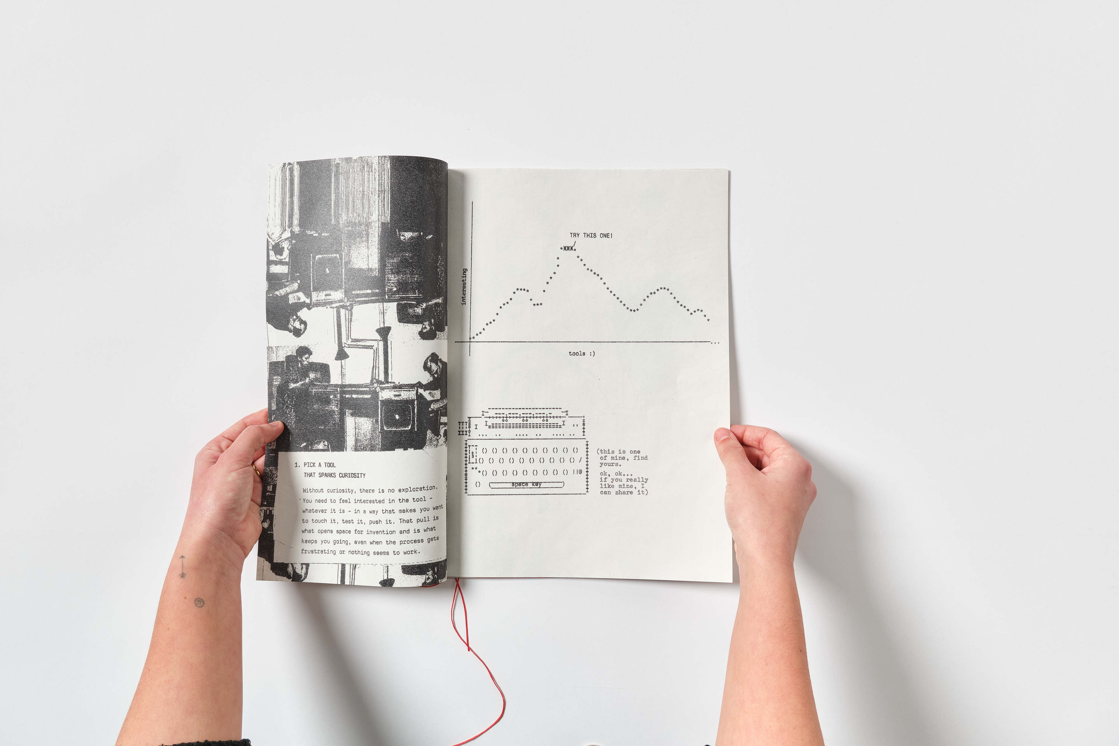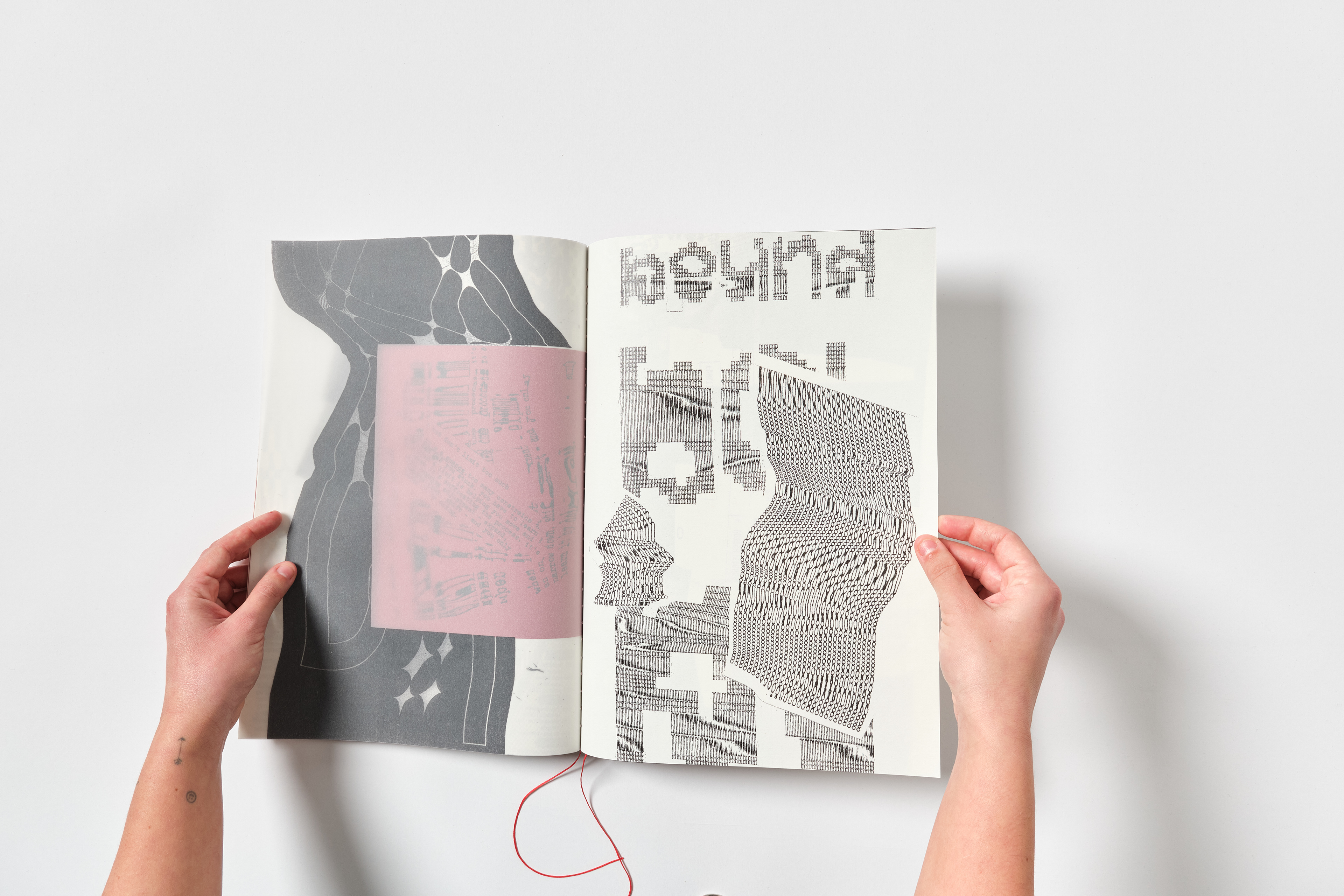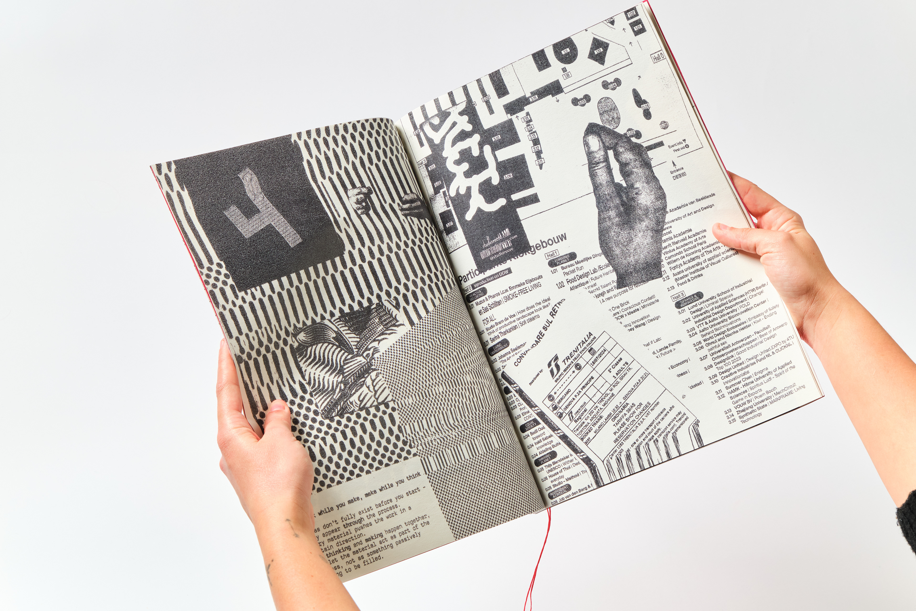 Keeping the hands-on-approach of the project, the pages were bound together manually, using the Japanese stab binding technique. The color of the thread connects to the color accent of the manifesto: red, the only additional color the machines could produce besides black.