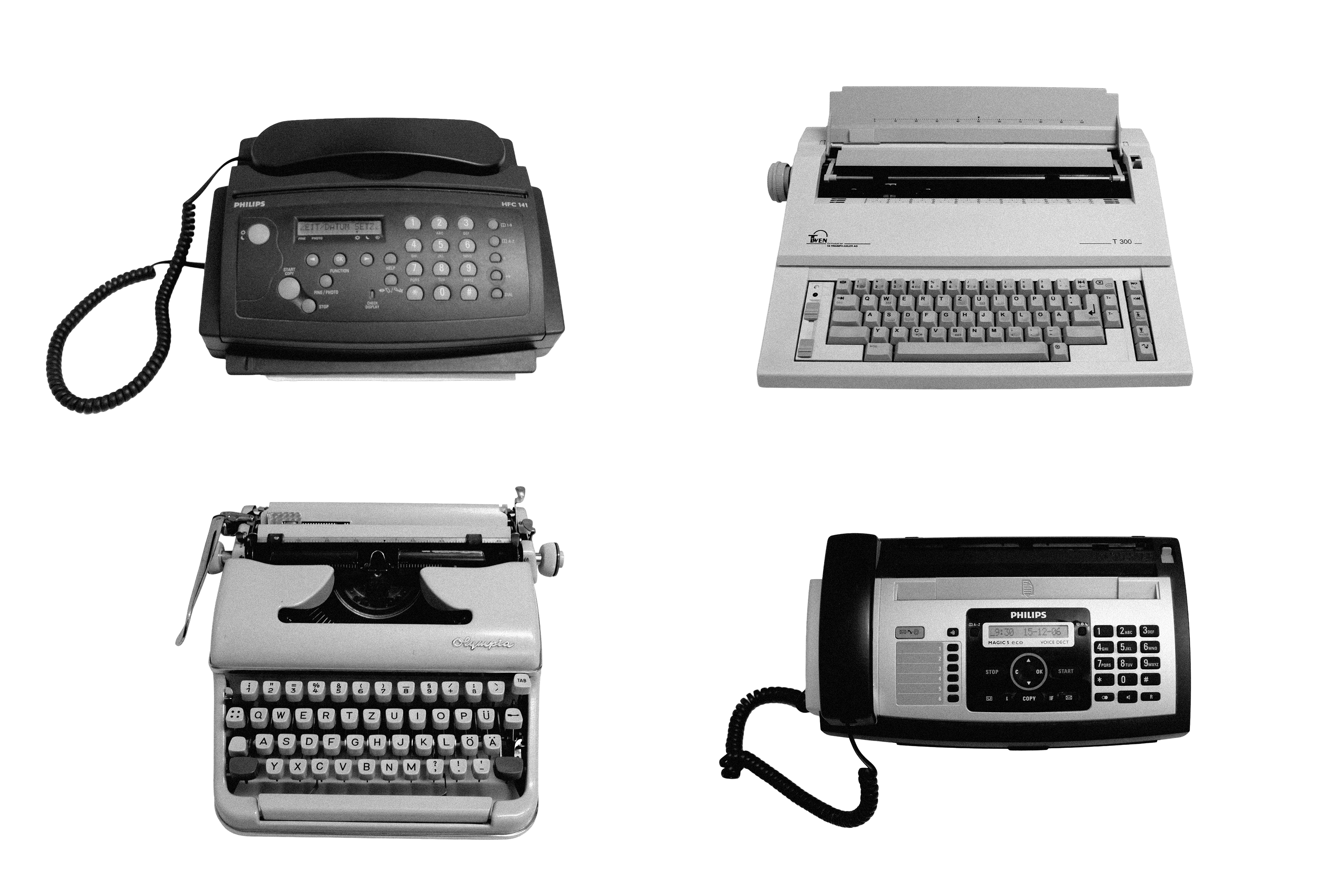 The development of the manifesto was exclusively made with an analog typewriter (Olympia SM9, 1964), an electric typewriter (Triumph-Adler Twen T 300, c.1985), a fax machine that uses thermal paper (Philips HFC 141), and another fax machine (Philips Magic 5 eco voice dect) that uses plain paper and a thermal transfer ribbon. Additionally, I used an old rotary number stamp and ephemeral papers that I had collected over the months (tickets, packaging, flyers, postcards). Nothing was produced digitally, and nothing was printed for the project. Once done, the analog-made pages were scanned, and copies were printed.