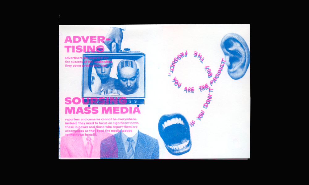 Unmasking Deception - have you seen through?, is a self-published zine made to discuss the idea of propaganda in western democracies. Based on the Propaganda Model (conceptual model in political economy advanced) proposed by Noam Chomsky and Edward S. Herman in the book Manufacturing Consent (1988), the zine presents the 5 filters in which corporate media operates on: ownership, advertising, sourcing, flak and fear. It seeks to explain how the media manufactures our consent for economic, social and political policies.