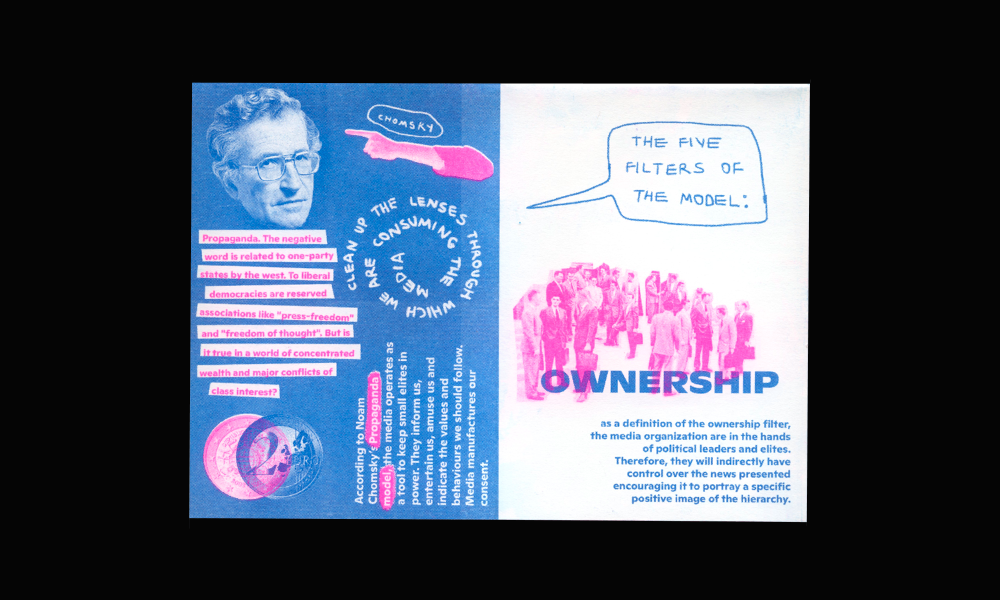 The goal of the zine is to work as a sort of a reminder, or a check-list, when consuming news. No news nor sources are objective. Those filters are not to be seen as generalization, but rather as a reminder. In moments of extreme thoughts and political polarization, we believe we need to be careful of not only finding fault in the other side and be able to have self-criticism in our political context.
